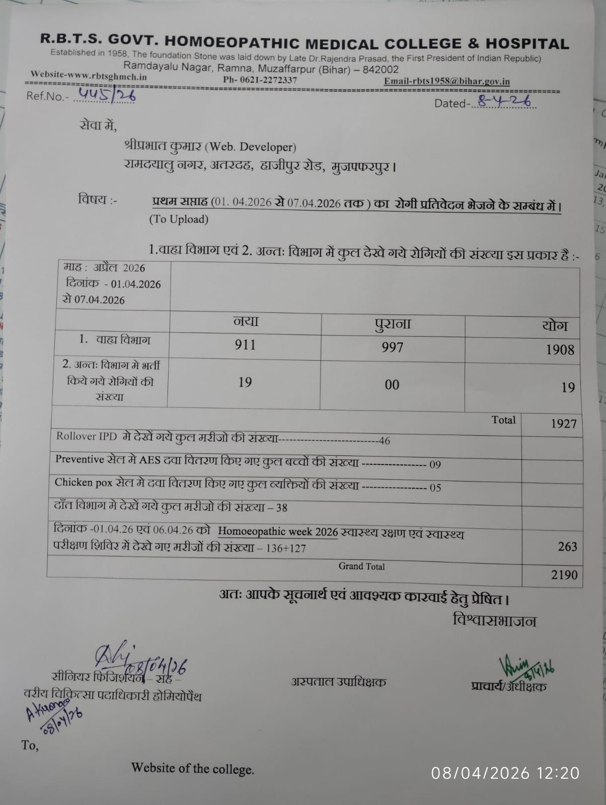 Master Chart of Patients during 01 April to 07 April 2026