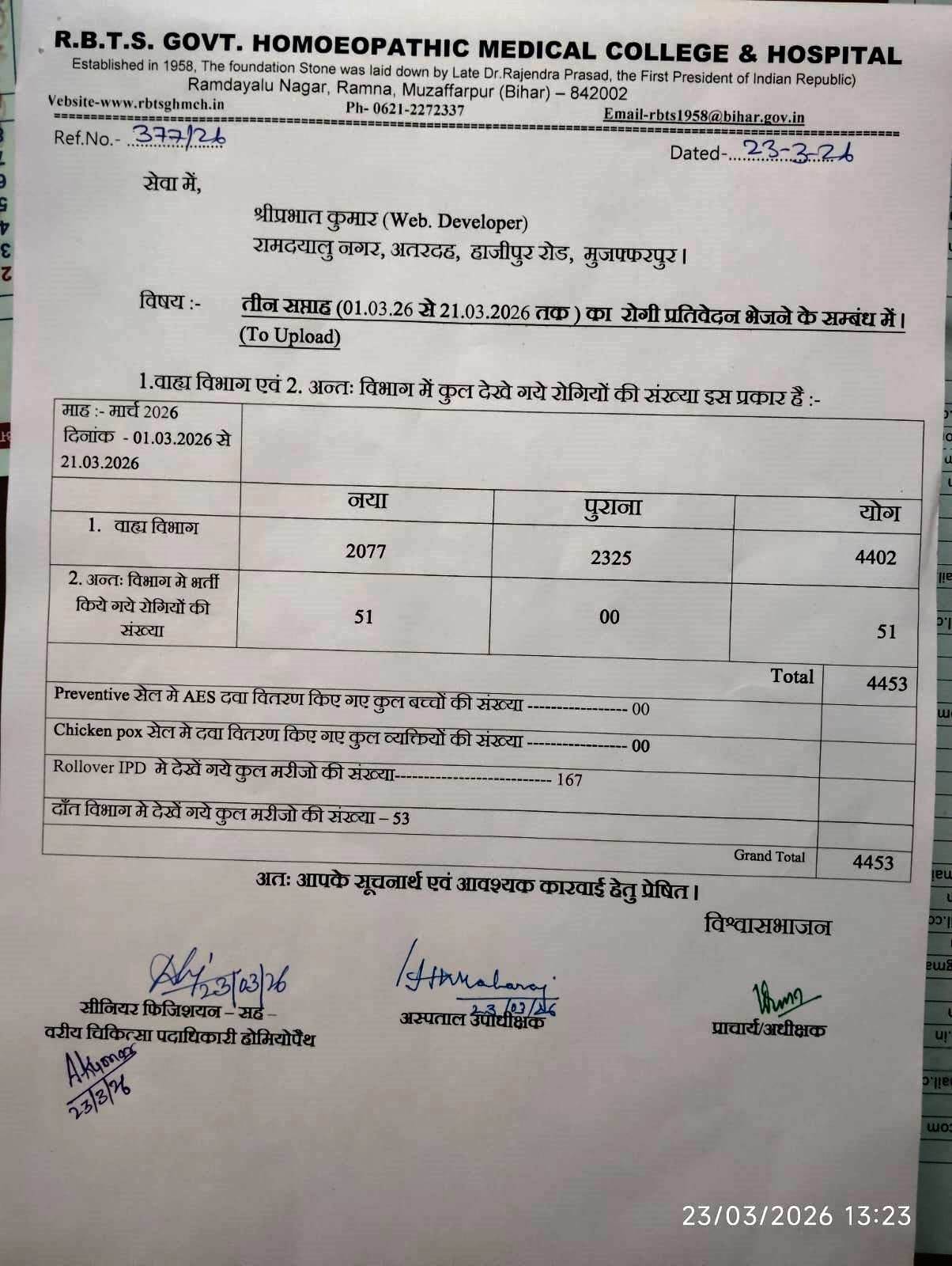 Master Chart of Patients during 01 March to 21 March 2026