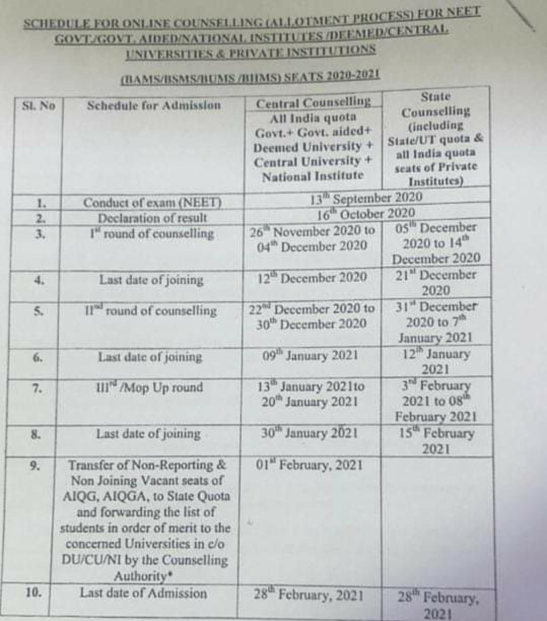 Schedule For Online Counseling For NEET.